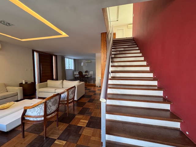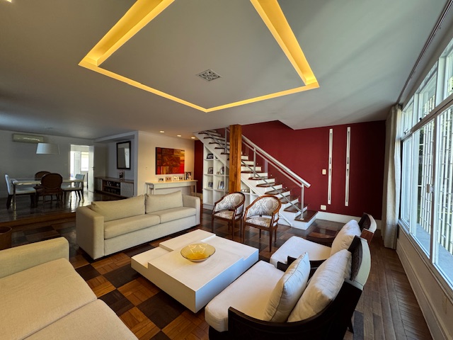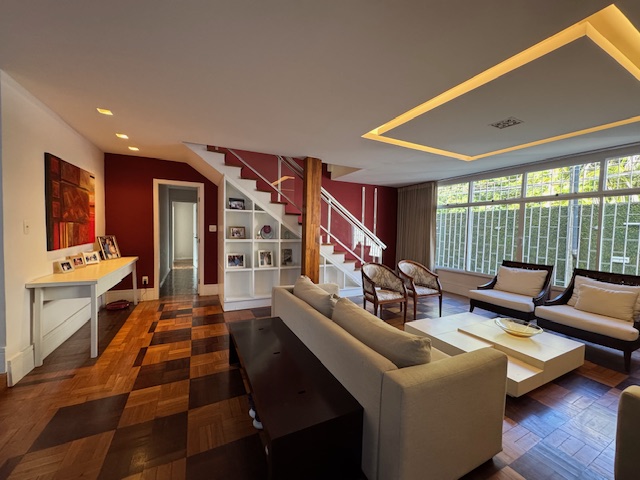 Casa duplex co 387m2 na Gavea, proximo a Escola Parque, com sala ampla, 3 quartos sendo 2 suites, banheiro social, copa cozinha, salao no 2 andar com jogos, escritório e TV conjugados, sala de Gym, sauna a vapor, lavabo, terraço com churrasqueira. Garagem para 4 carros, jardim na frente e lateral da casa, lavandaria e dependências completas.