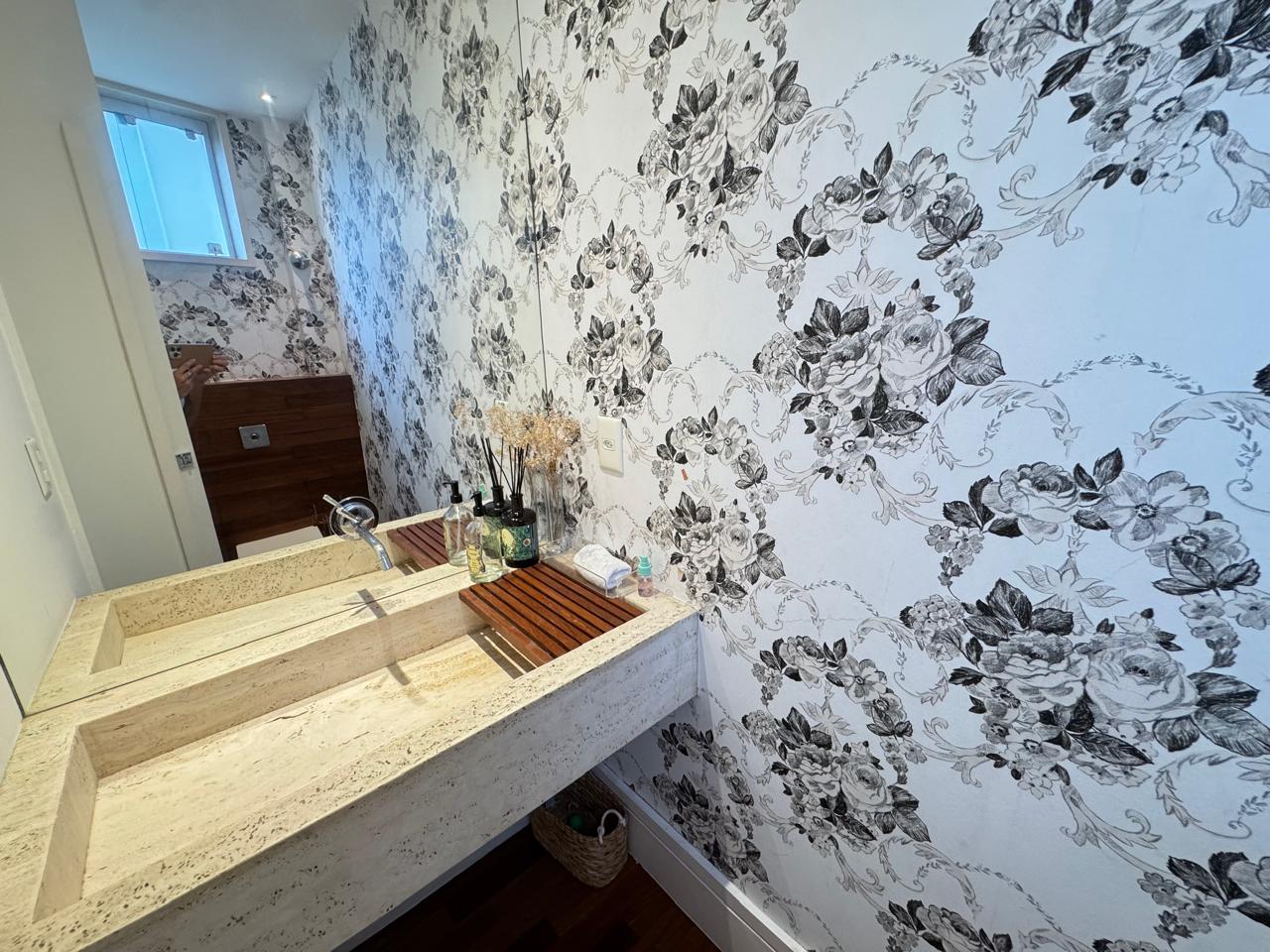 Garden reformado, amplo e bem iluminado com 315m2 e excelente área externa privativa. São cinco quartos, sendo duas suítes, lavabo banheiro social, dependência completa e lavanderia. Conta ainda com duas vagas de garagem.