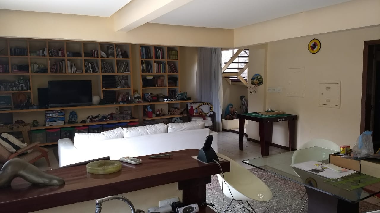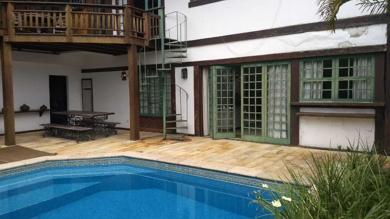 Casa duplex com 366 m2 em terreno de 485 m2 . Salão , sala de jantar, varanda aberta, escritório, 3 suítes sendo uma master com closet, banheiro social, cozinha, jardim interno, área de serviço, lavanderia, dependência. Salão anexo com piscina, terraço e jardim. Garagem.