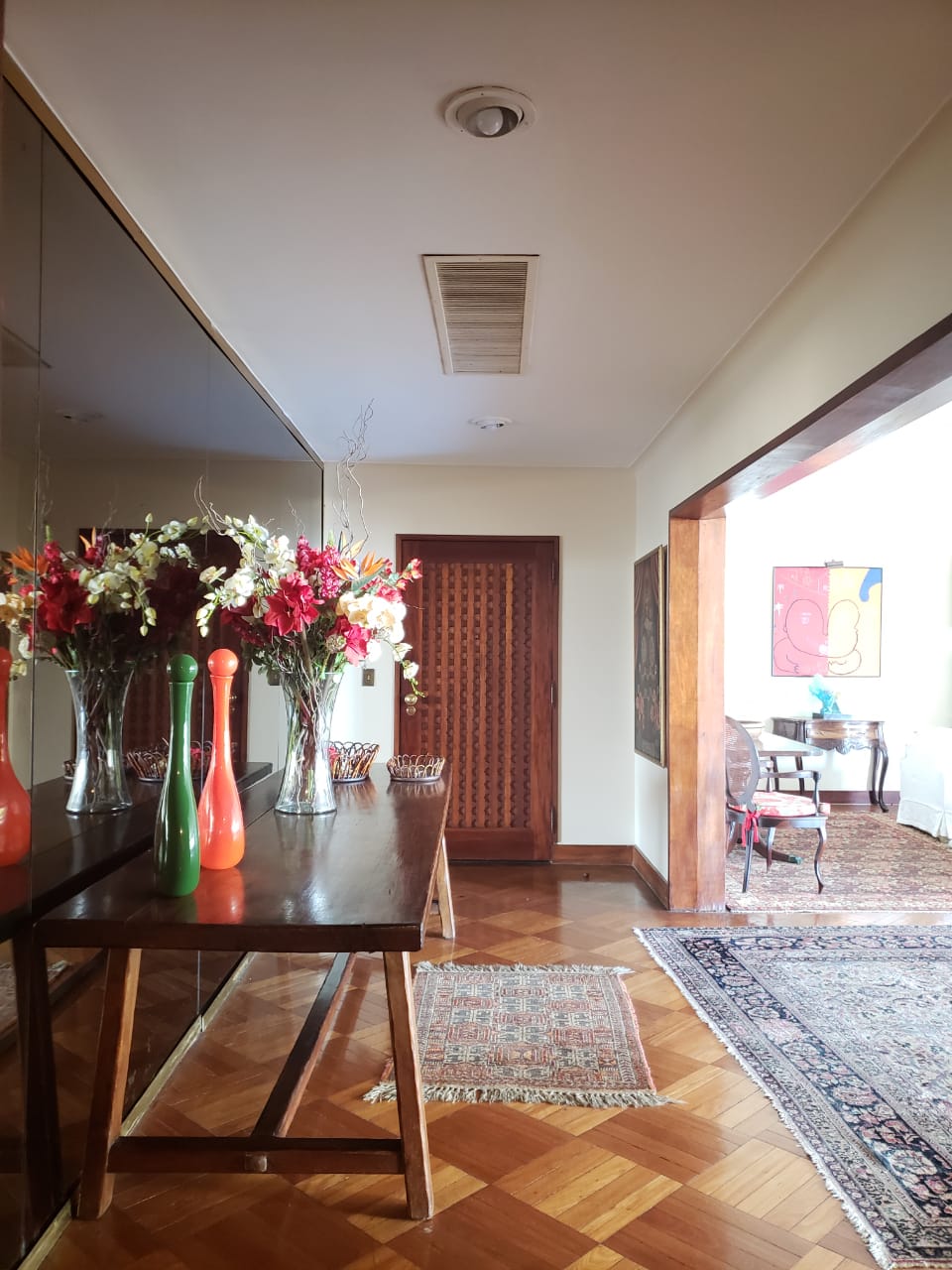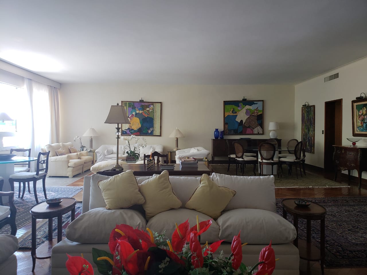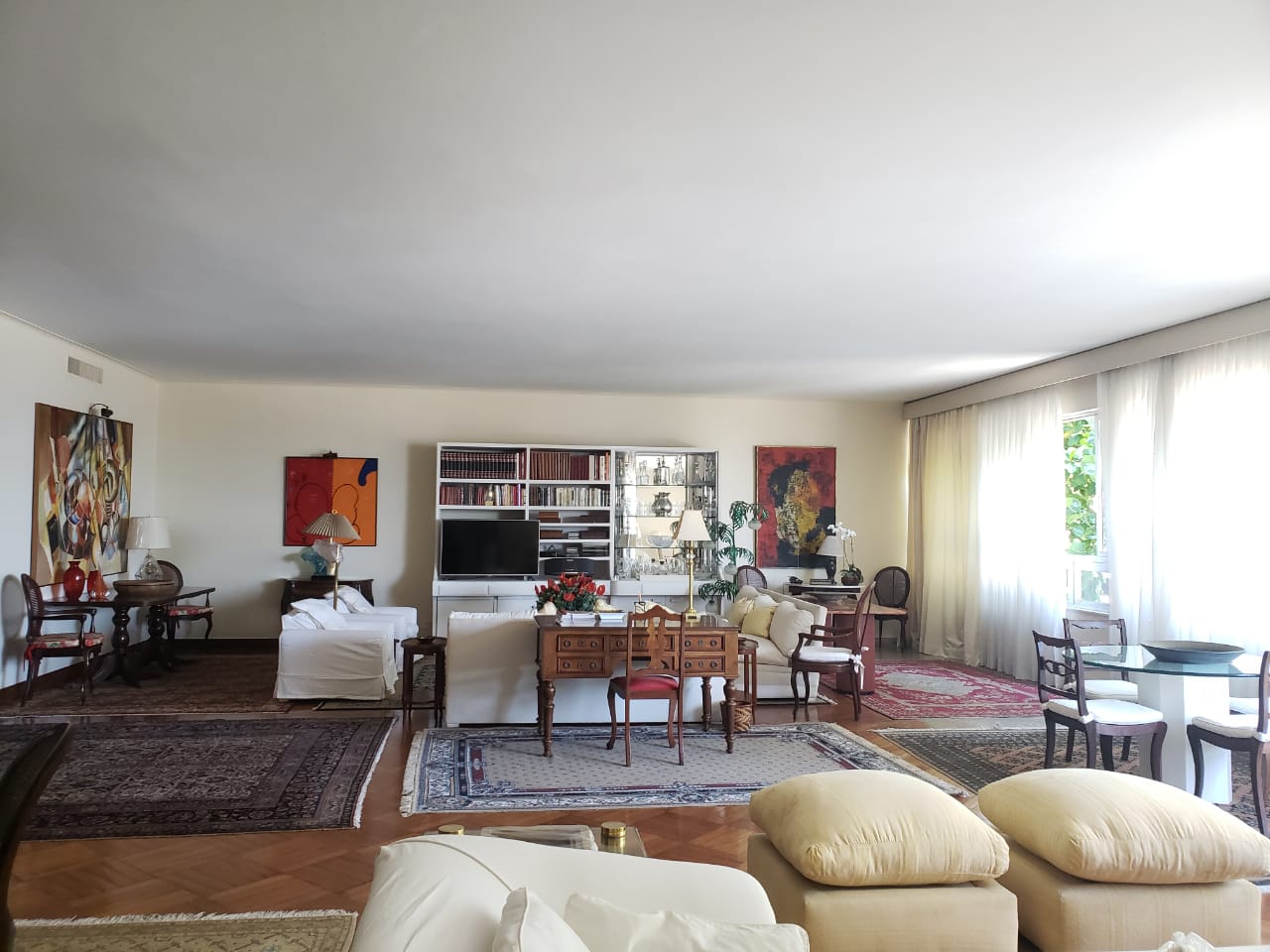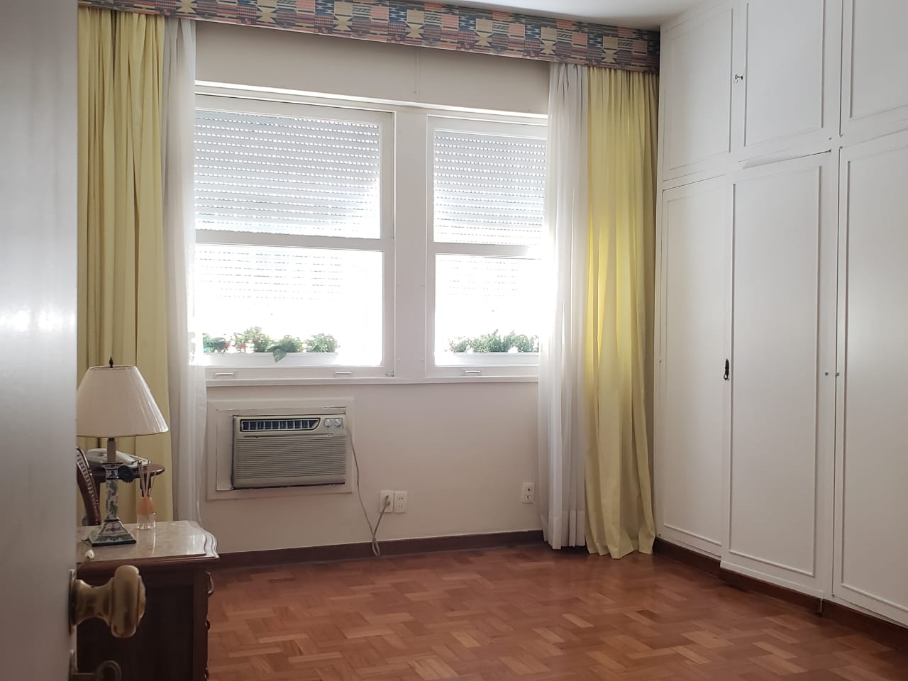 Apartamento mobiliado espetacular de 400m2, com vista pra praia de Ipanema e Arpoador, com planta circular e com todos os cômodos amplos, composto por salão magnífico em 3 ambientes, lavabo, sala íntima, escritório, corredor que leva aos 3 quartos, sendo 1 suíte, banheiro social com banheira, cozinha ampla com copa, área de serviço com 2 quartos de serviço e banheiro de serviço. Portaria 24h e 2 vagas de garagem.